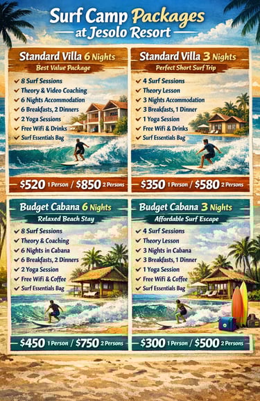 Instead of offering just one service, we bring everything together to make your holiday easy and stress-free. Our goal is to match every guest with the perfect surf package that fits their needs, comfort level, and budget, so you can enjoy your time without any worries.